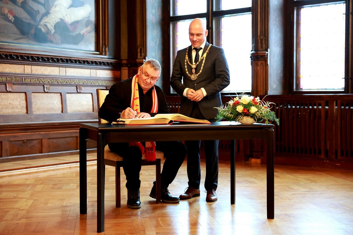 Die Einladung zu dieser Ehrung erfolgte durch Oberbürgermeister Andreas Horn und sorgte für eine spürbar wertschätzende und zugleich sehr persönliche Atmosphäre. Um Punkt 12:00 Uhr wurde deutlich, dass es an diesem Mittag nicht um eine formelle Unterschrift ging, sondern um Anerkennung für viele Jahre Einsatz, Leidenschaft und Verbundenheit mit Verein und Stadt.