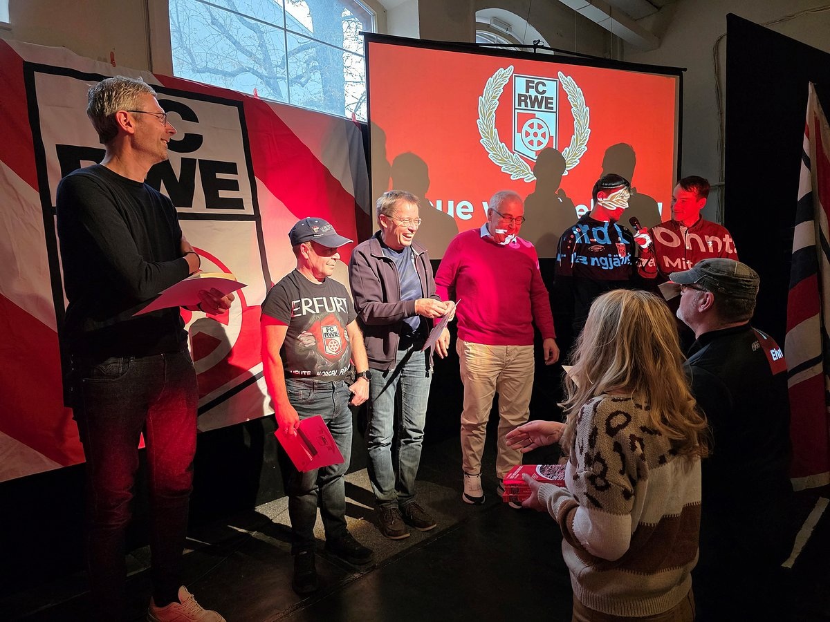 Rot-Weiß wird im Januar 60 Jahre alt, aber in Wahrheit steckt ein 130-Jähriger im Trikot. Darauf machte der Ehrenratsvorsitzende Michael Kummer, der zugleich mit Max Laue vom Fanrat die Veranstaltung moderierte, in einem kurzen Vortrag aufmerksam.Tradition hat eben viele Geburtstage. Oder wie es Steffen Raßloff vom Ehrenrat pointierter ausdrückt: