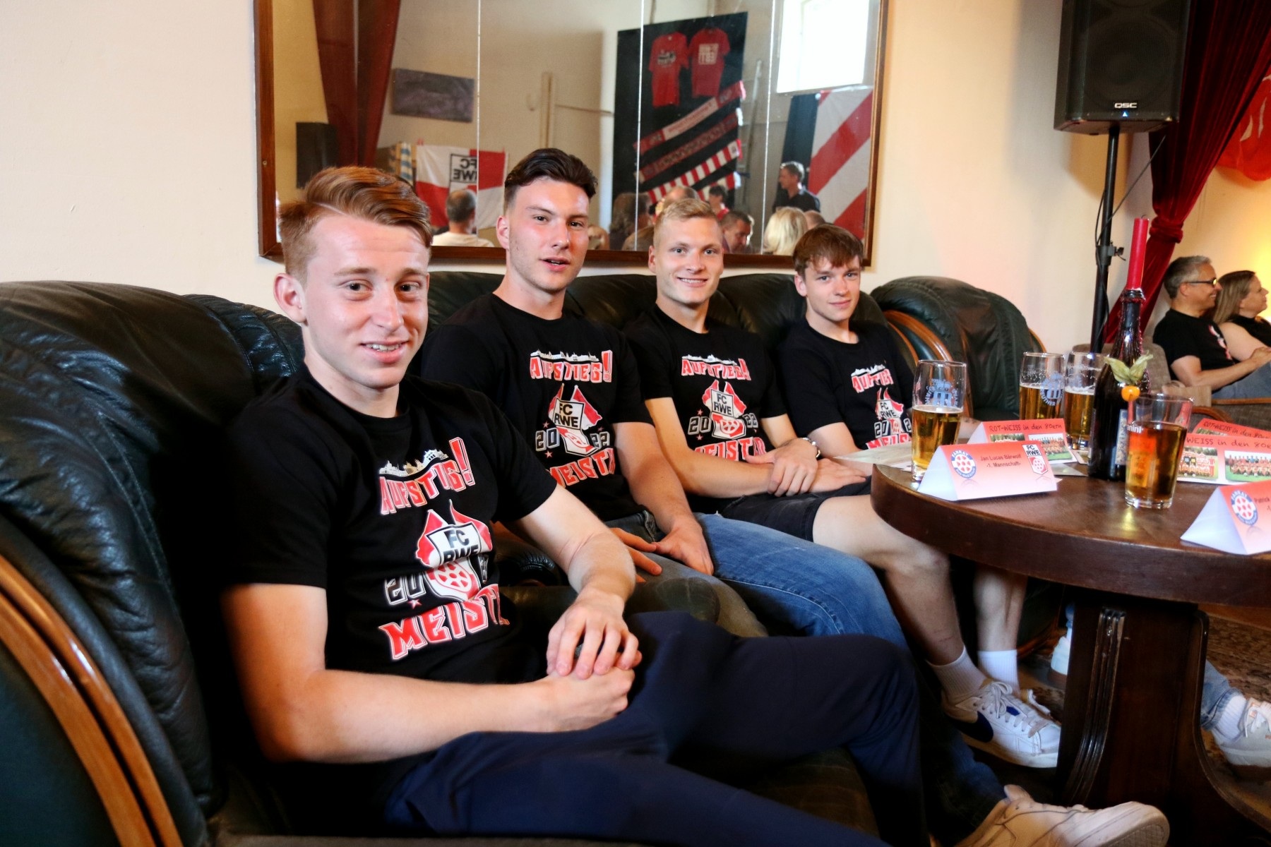 Eine gute Nachricht gab es auch noch am Ende: Dank der Versteigerung eines von der gesamten ersten Mannschaft unterschriebenen Aufstiegsshirts (die ihr bei Domsport - ohne Unterschriften - auch käuflich erwerben könnt), den Spenden für das von Schluntz zur Verfügung gestellte Fass Freibier und dem Engagement von Marcel Junghanns kamen an diesem Abend insgesamt 1.011,- € zusammen, die in voller Höhe in die Aktion „Anstoß.NLZ“ fließen.