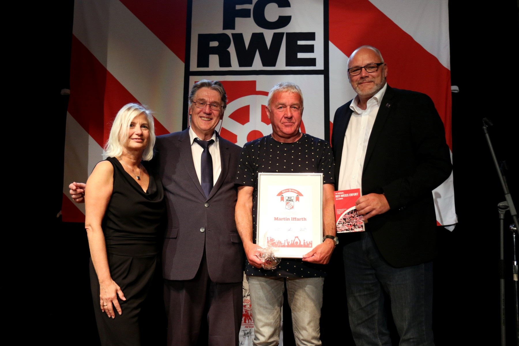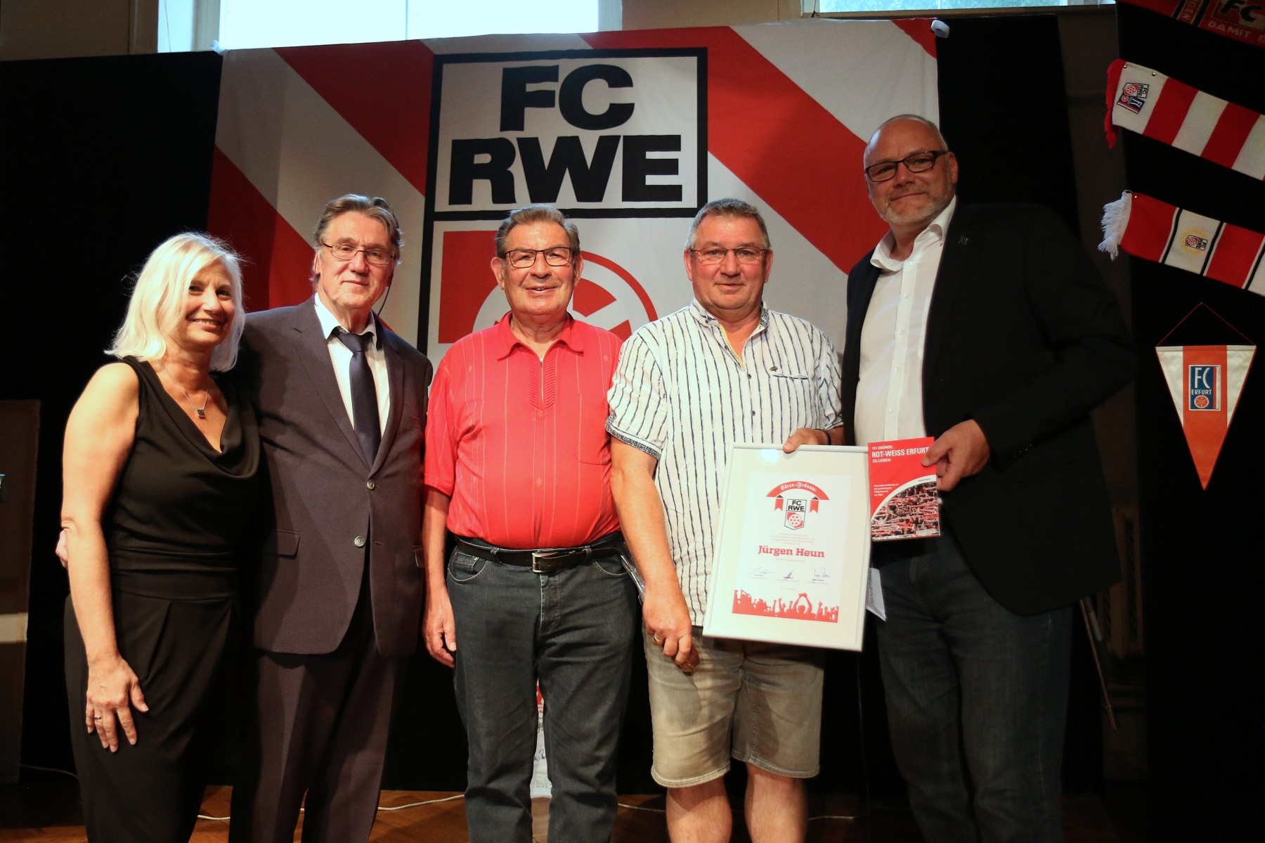 wurden bei dem vom Fanrat Rot-Weiß Erfurt e.V. am vergangenen Freitag unter dem Motto "Rot-Weiß Erfurt in den 80ern: Erinnerungen, Emotionen, Ehrungen" organisierten rot-weißen Traditionsabend im Café Nerly ausgezeichnet.