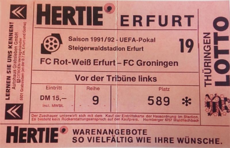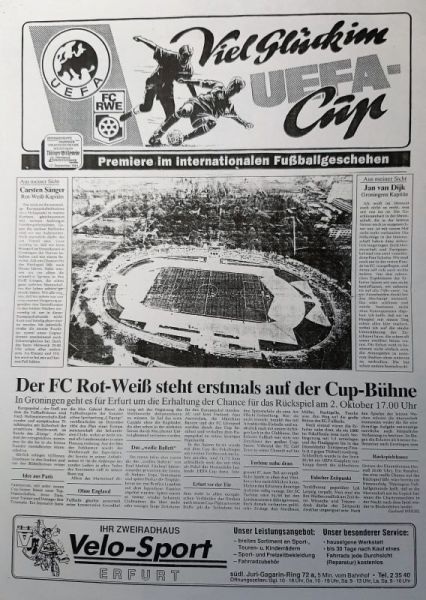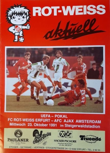 Zu Saisonbeginn am 17. August 1991 hatten noch 14.000 Zuschauer das 2:1 im DFB-Pokal gegen Bundesligist Schalke 04 gesehen. Dabei rückte Thomas Linke in den Fokus, der ab 1992 bei Schalke, Bayern und in der Nationalmannschaft große Karriere machte. Später schafften weitere RWE-Eigengewächse den Sprung in Oberhaus, Europapokal und Nationalmannschaft. Für die vorbildliche Nachwuchsarbeit steht allen voran der gebürtige Erfurter Clemens Fritz, der ab 2001 in Karlsruhe (zusammen mit Marco Engelhardt), Leverkusen und Bremen große Erfolge feierte. Freilich zeigt dies auch das Dilemma, dass der FC Rot-Weiß Erfurt als „Ausbildungsverein“ immer wieder talentierte Spieler an höherklassige Vereine abgeben muss.Text: Dr. Steffen Raßloff